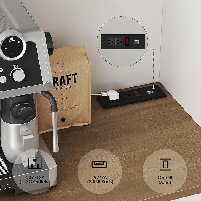 - Charging Station & Cable Management: The kitchen pantry cabinet is specially designed with outlets to make life easier, your daily household appliances can have quick power connection. Moreover, a wire hole still exists for your extra needs