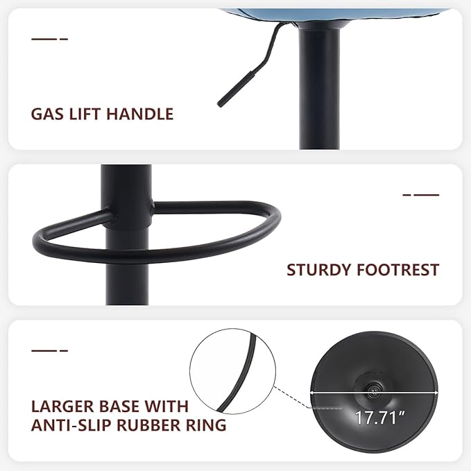 - 【Swivel/Adjustable】The bar stools swivel mechanism allows for smooth and easy movement, while the gas-operated lift rod adjusts the height from 22" - 32" in 3 seconds. Compatible with 36" - 42" countertops (90% of US kitchen standards)