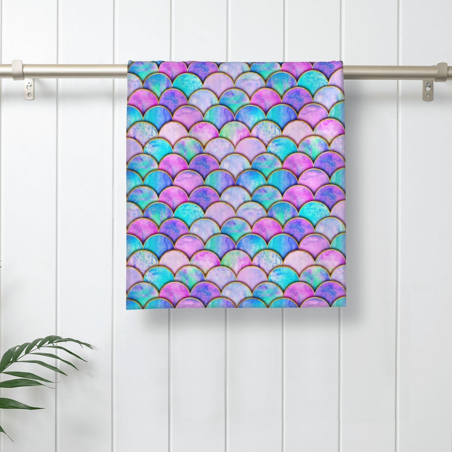 Cute Mermaid Scales Decorative Bath Hand Towels for Bathroom Set of 2, 14x28 Inch Rainbow Bathroom Hand Towels for Yoga Swim Hotel Spa Home Bathroom Decor
