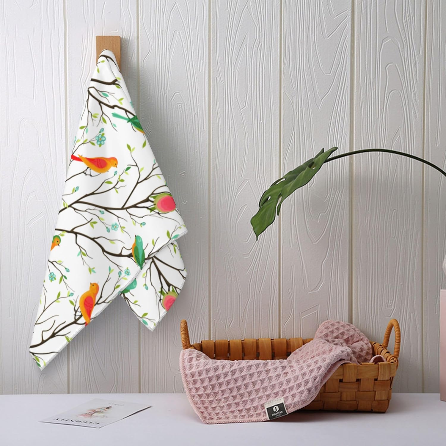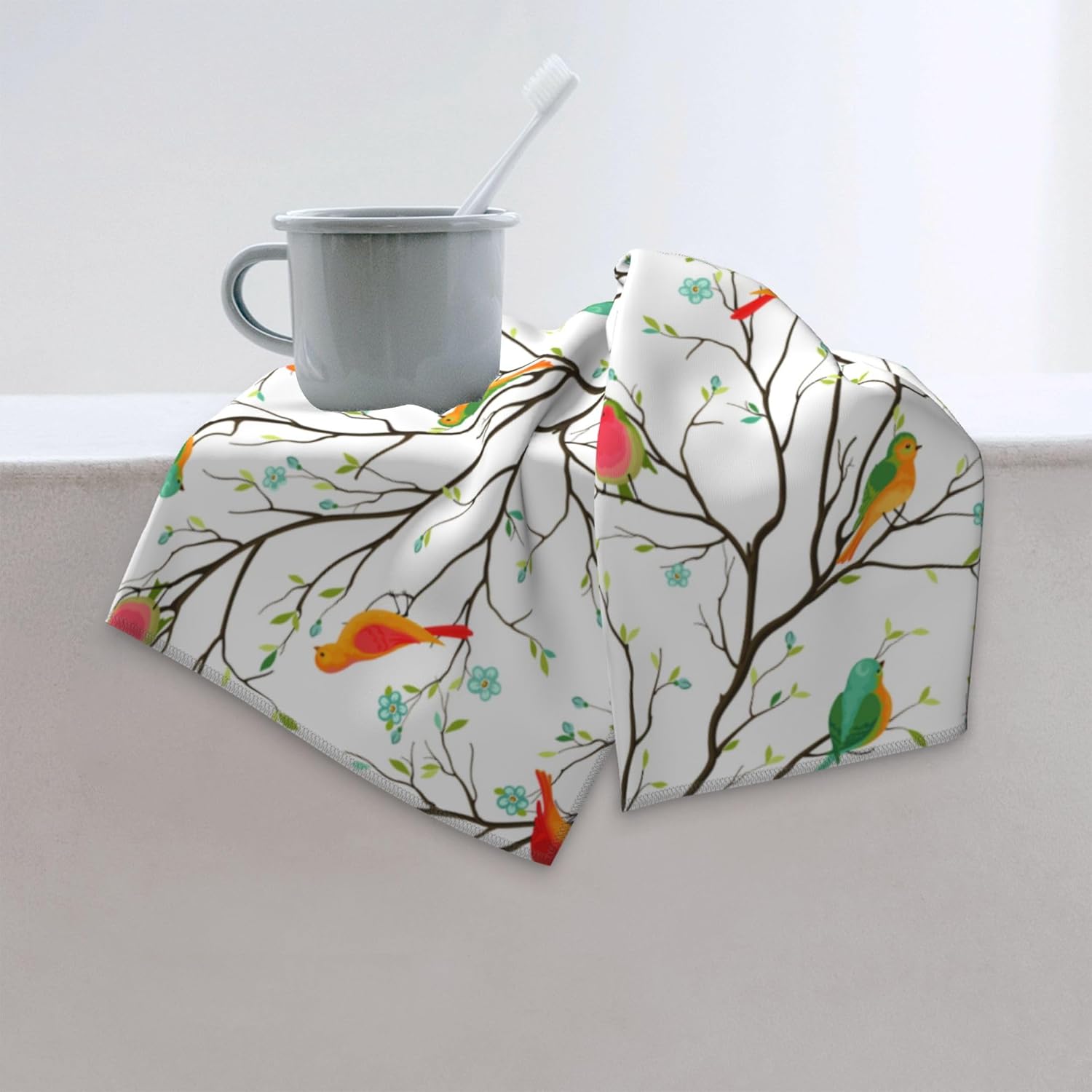 Birds on Tree Decorative Bathroom Hand Towels Set of 2 Spring Summer Bath Towels Soft Absorbent for Bathroom Kitchen Home Gym Yoga Spa 14"x28" Cute Birds Decorative Towel