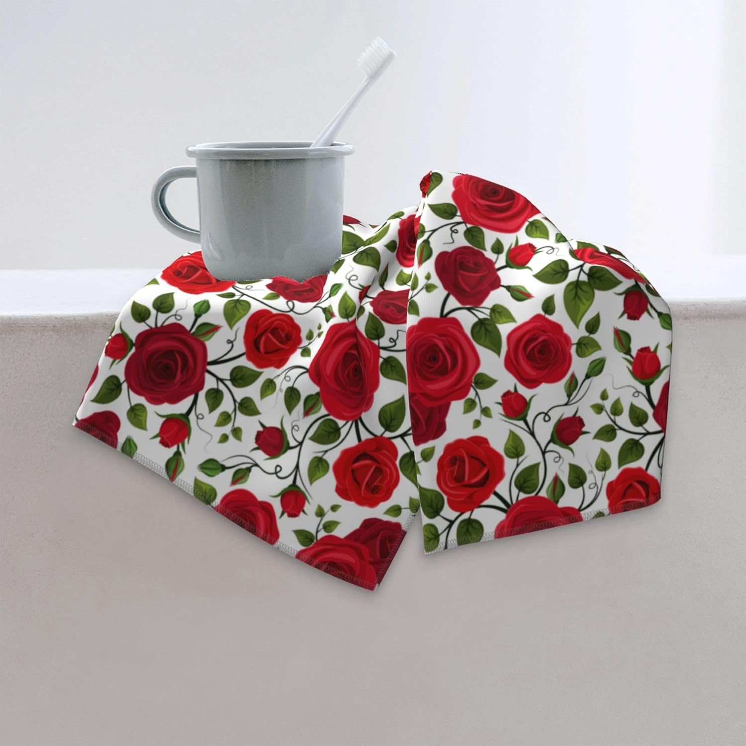 Red Rose Bath Hand Towels Decorative Set of 2, Soft Absorbent Flower Hand Towels for Bathroom Gym Hotel Spa Home Decor 14x28 Inch Bathroom Decorative Towels