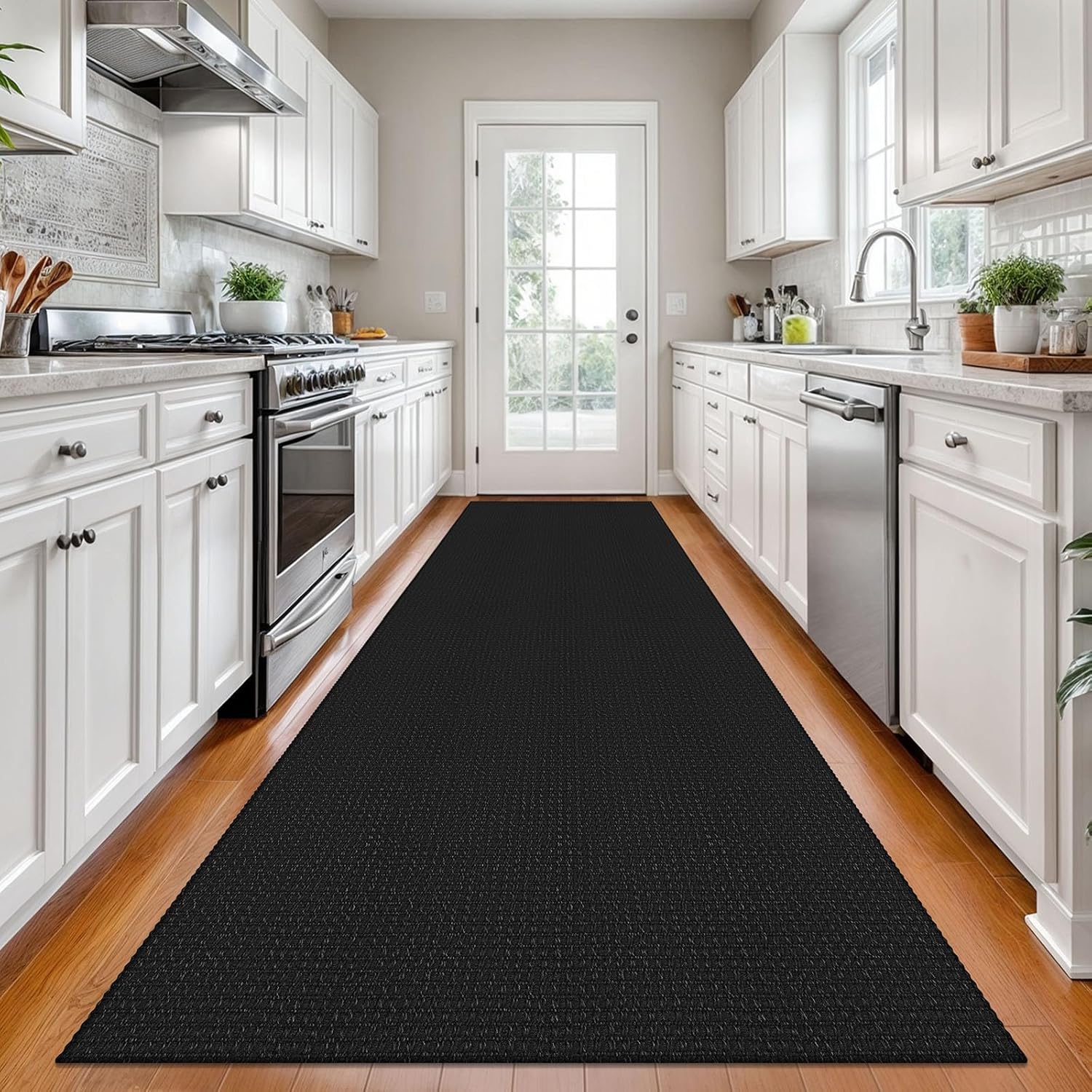 KOZYFLY Long Runners for Hallways 3x12 ft Washable Kitchen Runner Non Slip Rubber Backed Hallway Rugs Cotton Entryway Runner Rug Floor Carpet for Indoor Hall, Backdoor, Kitchen, Black/Dark Grey
