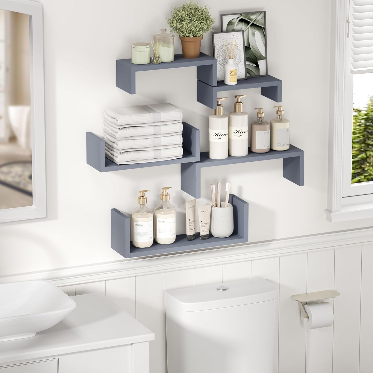 SRIWATANA Floating Shelves for Wall, Wall Shelves for Bathroom, Bedroom, Living Room, Kitchen, Office, Wood Shelves for Home Decor Set of 5 (Weathered Grey)