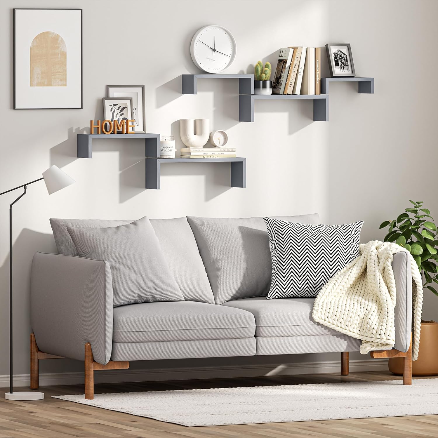 - Increased Storage Space, Enhanced Tidiness:Designed with 5 wood shelves in varying dimensions , these versatile wall shelves serve as a great storage solution to stylishly display your pictures, plants, decorations, collectibles, trophies, and more.