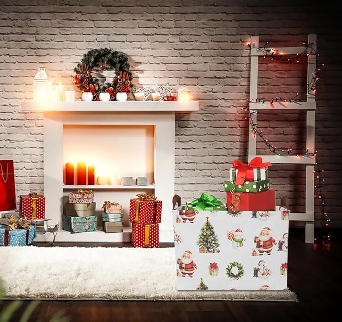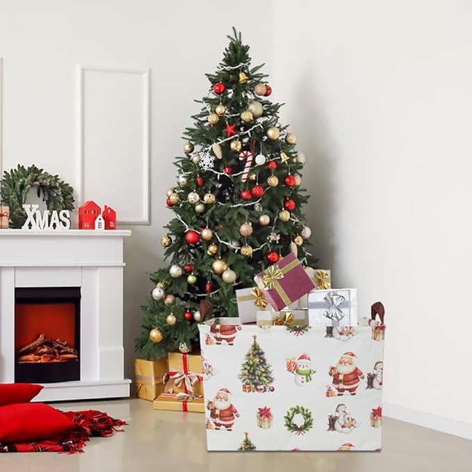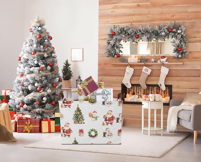 CLOCOR Collapsible Fabric Storage Container, Waterproof Toy Bin with Handles, Gift Basket (Watercolor Christmas)