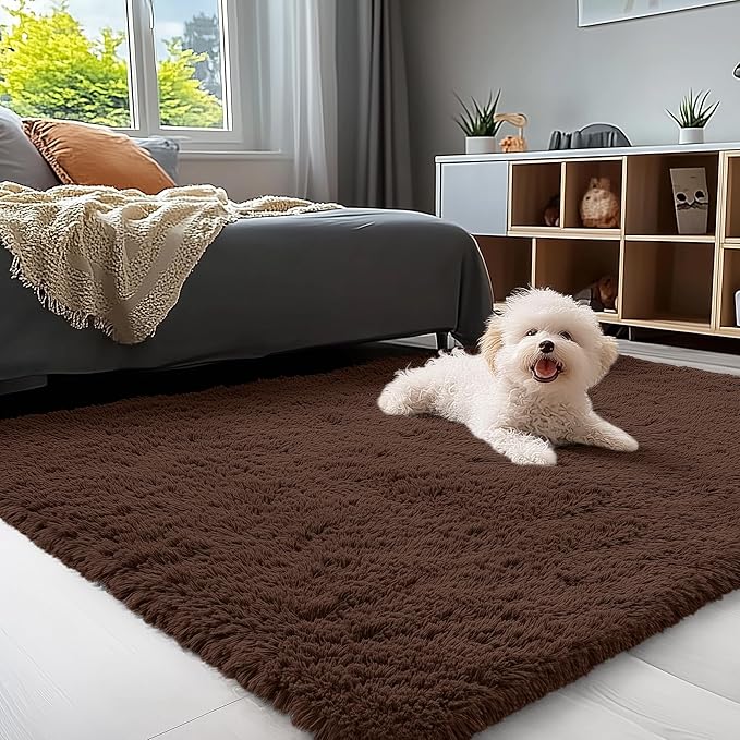 OLANLY 3x5 Machine Washable Small Bedside Rug, Soft Fluffy Shaggy Rugs for Living Room, Bedroom, Indoor Floor Carpet for Kids Girls and Boys, Preppy Dorms, Nursery, Home Decor Aesthetic, Coffee