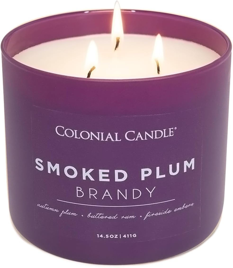 Colonial Candle Smoked Plum Brandy Jar Candle, Pop of Color Collection, 3 Wick, Purple, 14.5 oz - Up to 60 Hours Burn