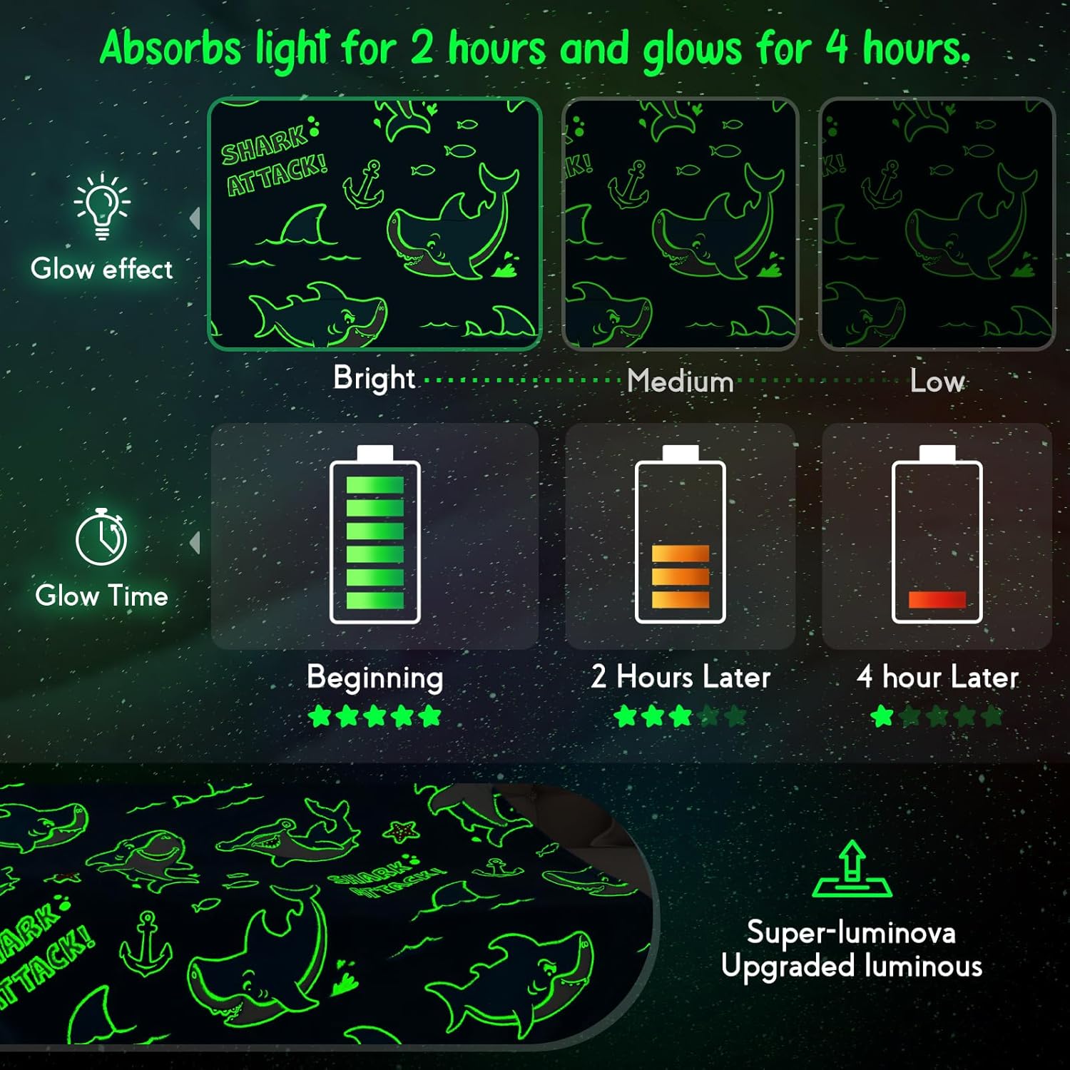 - Gifts For Kids Boys Teens: Get it now to surprise your boys and girls on Birthday, Christmas, Halloween, Easter, Thanksgiving or any occasion. Luminous shark blanket is g great guardian for kids at night, which can inspire funny ideas for kids to enjoy the magical glow whether they are having sleepovers or playdates or just cuddling on the couch with mom and dad.