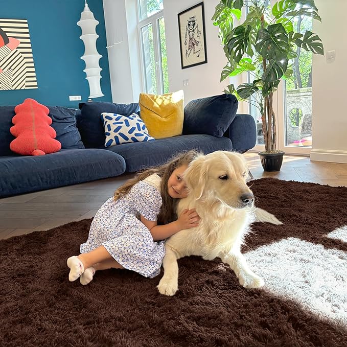 - [Family-Friendly for Kids and Pets] Our rug is made from soft, eco-friendly polyester, ideal for homes with children and pets. The plush texture offers comfort for barefoot walking and tummy time, and the vibrant color and furry appearance add fun to any room.