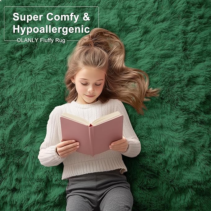 OLANLY 5x7 Machine Washable Large Area Rugs for Living Room, Bedroom, Soft Fluffy Shaggy Bedside Rug, Indoor Floor Carpet for Kids Girls and Boys, Dorms, Nursery, Home Decor Aesthetic, Dark Green