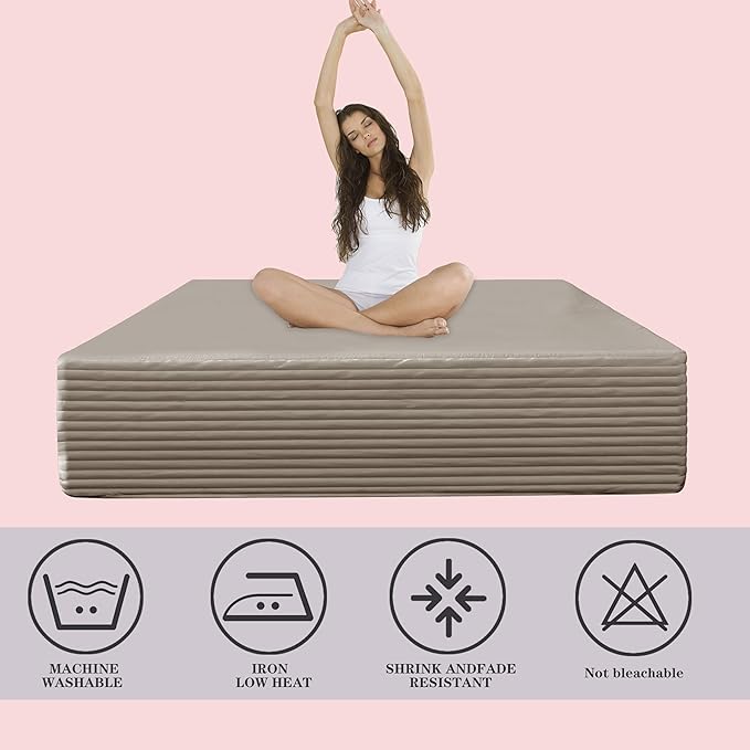 King Bed Skirt-Box Spring Cover with 14 Inch Tailored Drop,Wrinkle and Fade Resistant Hotel Wrap Around Bed Skirts,Bed Frame Cover (Horizontal Stripe Light Khaki, King)