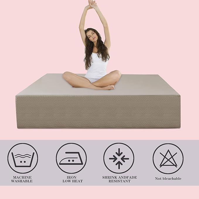 King Bed Skirt-Box Spring Cover with 14 Inch Tailored Drop,Wrinkle and Fade Resistant Hotel Wrap Around Bed Skirts,Bed Frame Cover (Wave Pattern Light Khaki, King)