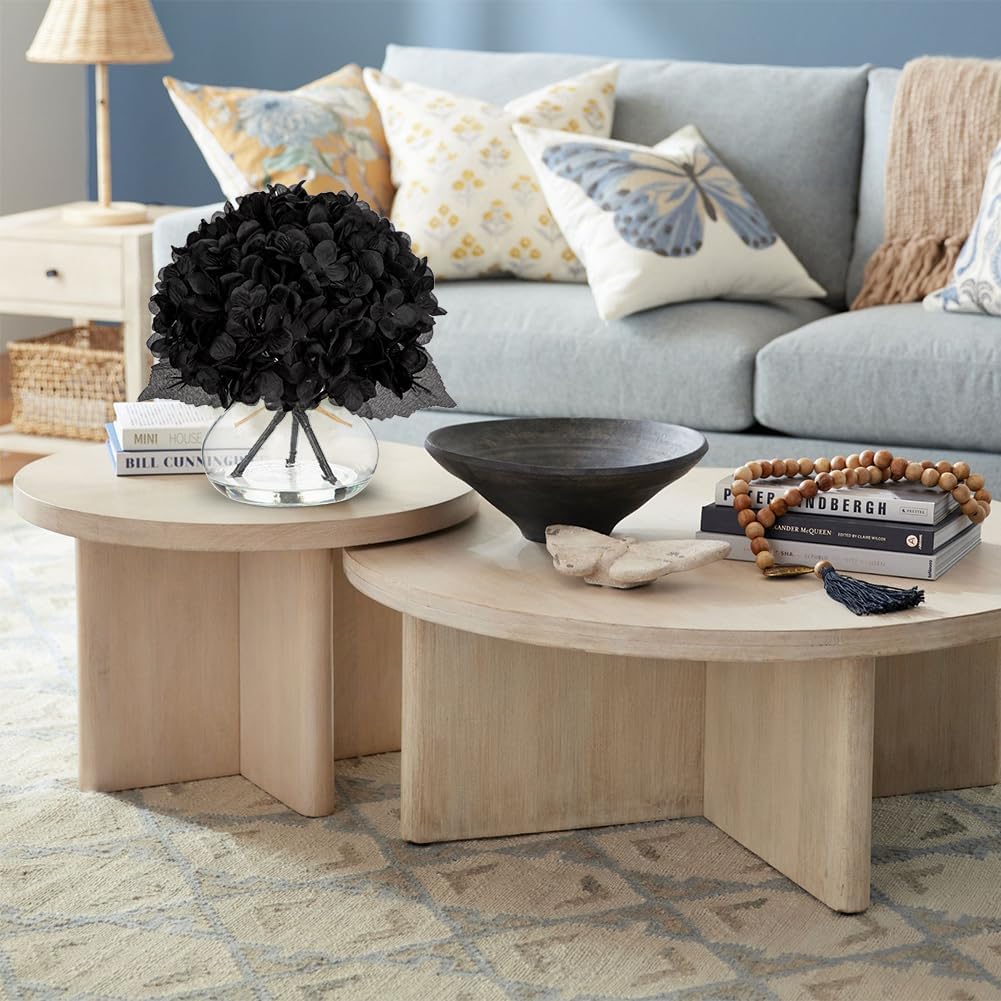 Hollyone Hydrangea Fall Flowers Artificial for Decoration with Glass Vase Black Silk Faux Flowers Arrangements in Vase with Faux Water Fake Floral Bouquet Table Centerpiece Fall Decorations for Home