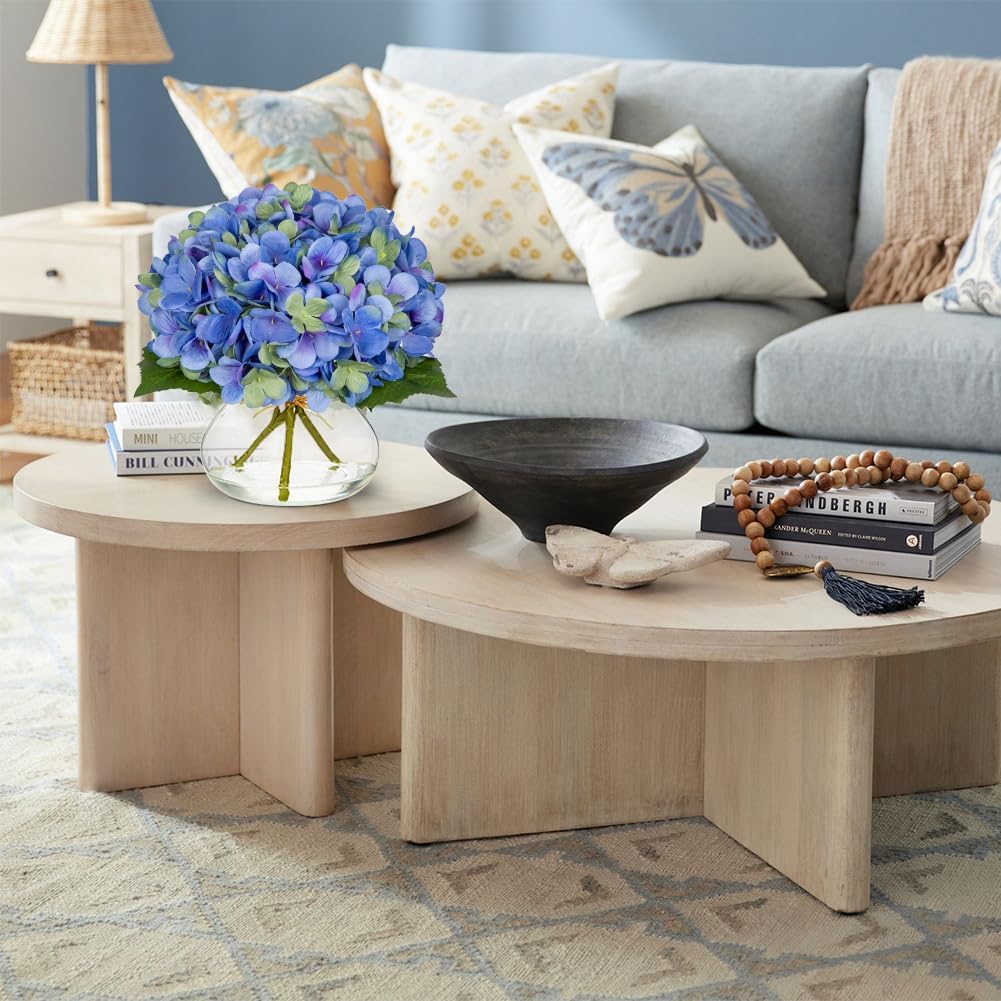 - 💐【Realistic & Elegant】Artificial hydrangea flowers with glass vase suits look so beautiful, unique craft design, brings different visual enjoyment to your home, create a romantic atmosphere, make you happy every day. Faux water on the vase adds to the pulchritude and realism. More realistic because of the details!