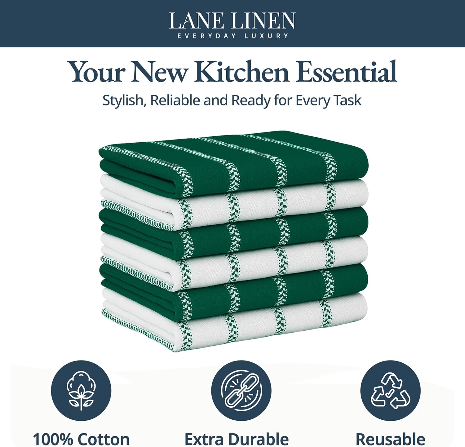 LANE LINEN Kitchen Towel Sets - 6 Pack Cotton Dish Towels for Drying Dishes, 18”x 28”, Hand Towel, Absorbent Tea Towels, Quick Drying Kitchen Towel Set - Christmas Green