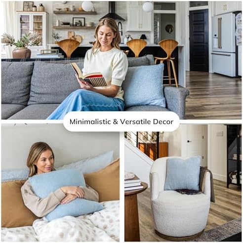 - LUXURIOUS TEDDY BOUCLE FABRIC: Our boucle pillow covers are made from soft teddy boucle fabric, providing a cozy and textured look. These boucle throw pillow covers offer a chic addition to any home decor, fitting perfectly in the living room, bedroom, or on the couch. Hypoallergenic and designed for comfort, these light blue pillow covers bring warmth and style to your living room decor while blending seamlessly with modern or boho home aesthetics.