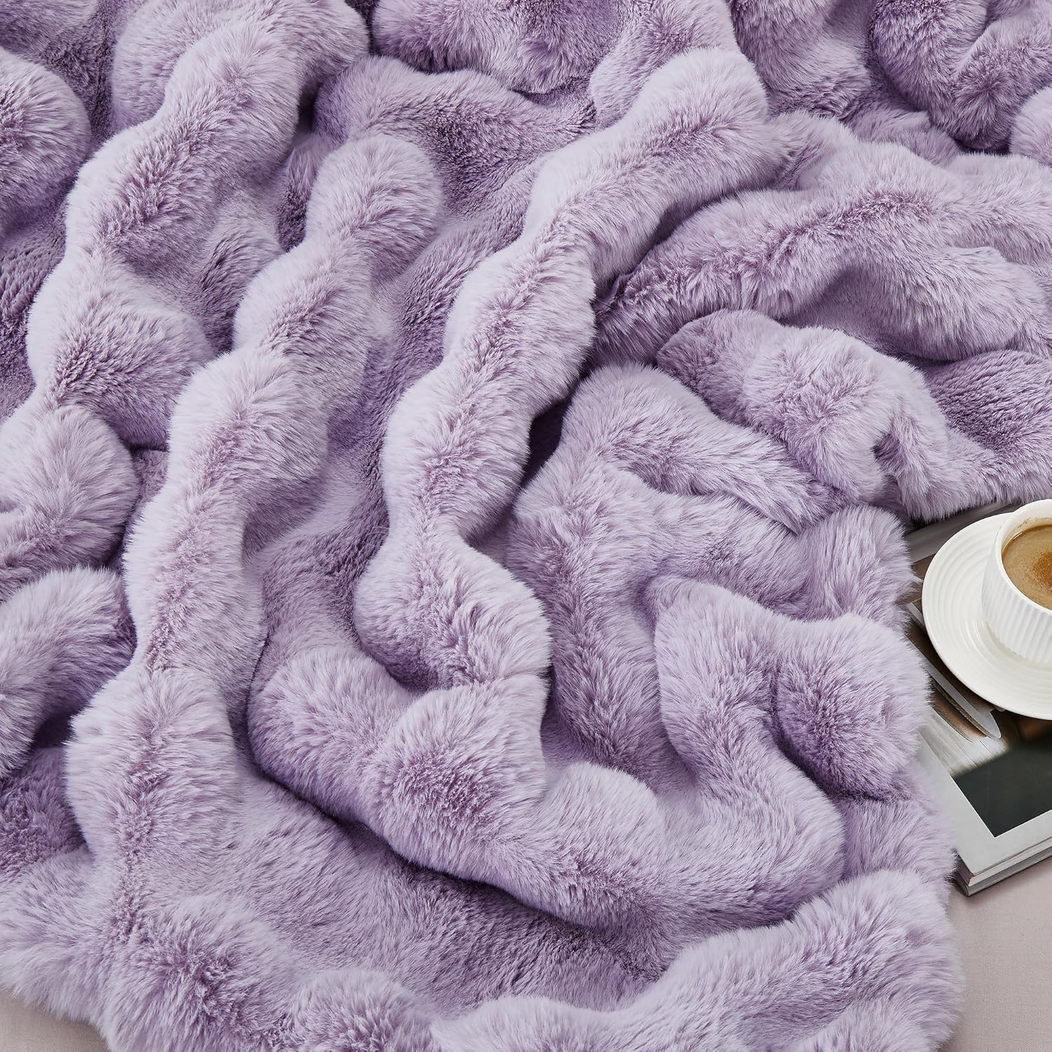 JONIYEAR Soft Fuzzy Bubble Faux Rabbit Fur Throw Blanket 50" x 60", Double Sided Aesthetic Warm Fluffy Blanket for Winter,Luxury Cozy Puffy Shaggy Plush Furry Blankets for Couch Sofa Bed, Lilac Purple