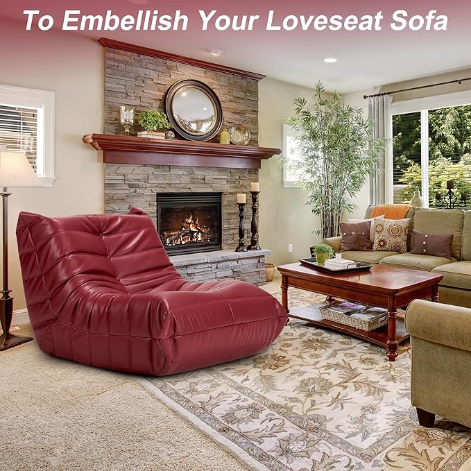 Hobestluk Giant Bean Bag Chair Lazy Floor Sofa, Memory Foam Fireside Sofa for Adults, Big Beanbag Faux Leather Armless Chair for Living Room Bedroom Dorm Office (WineRed, Single)