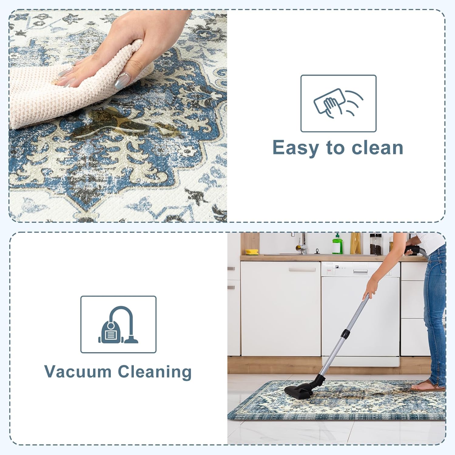 KIMODE Anti Fatigue Kitchen Mats, 17"x47"+17"x29" Boho Vintage Kitchen Rugs Sets of 2, Non Slip Kitchen Mats for Floor, Cushioned Kitchen Floor Mats for Sink Laundry Office Desk Blue Multi
