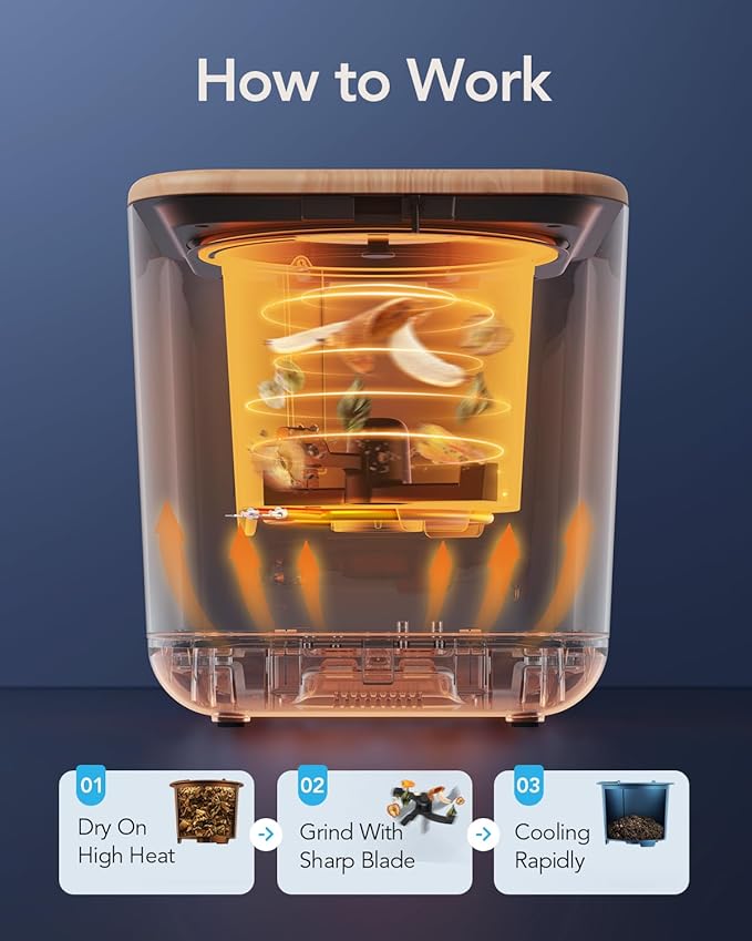 - Automatic Operation: Simply load your food waste into the top compartment, and the machine will automatically process it, eliminating the need for manual composting.