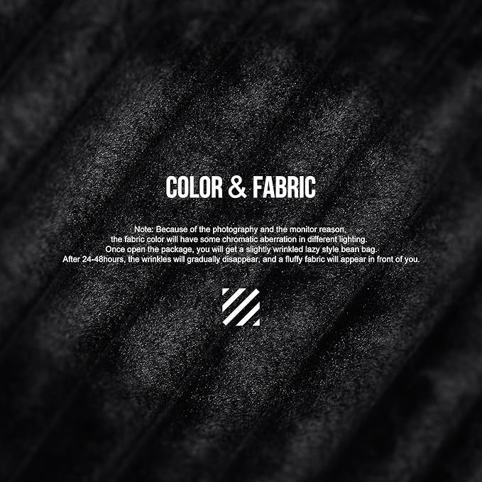 Hobestluk 5ft Bean Bag Chairs for Adults Large Beanbag Chair with Stripe Plush Cover Big Bean Bag Chair for Living Room Bedroom Dorm Office -Black (50” x 50” x 24”)