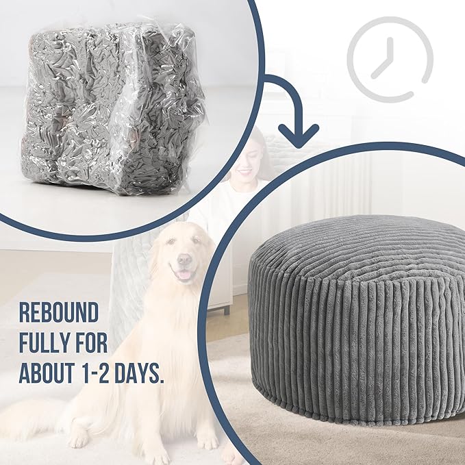 - Bean Bag with Filler: This 3ft bean bag chair is filled with high-resilience memory foam provides you with comfort and support. Giant bean bag chair comes in a condensed box, once open, the bean bags start to expand within few minutes, it will take 1-2 days to fully expand. Shake the whole bean bag chair after using a period, it will bounce back with comfort.