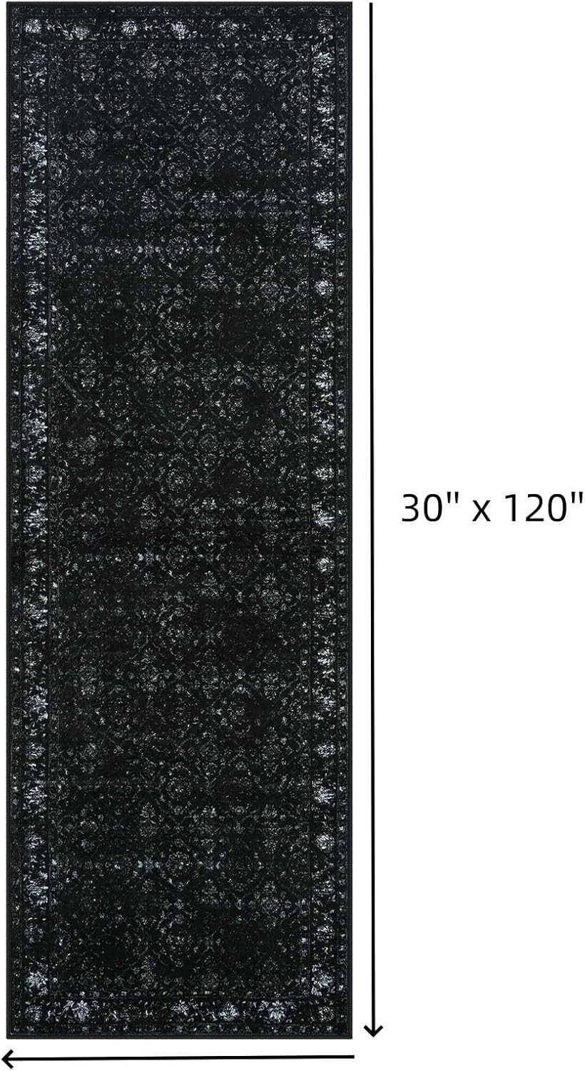 Vintage Black Rug Runners for Hallways Non Slip, 2.6x10 Washable Long Runner Rug for Entryway, Ultra-Thin Soft Runner Carpet for Kitchen Bedroom Bathroom (2'6"x10', Black)