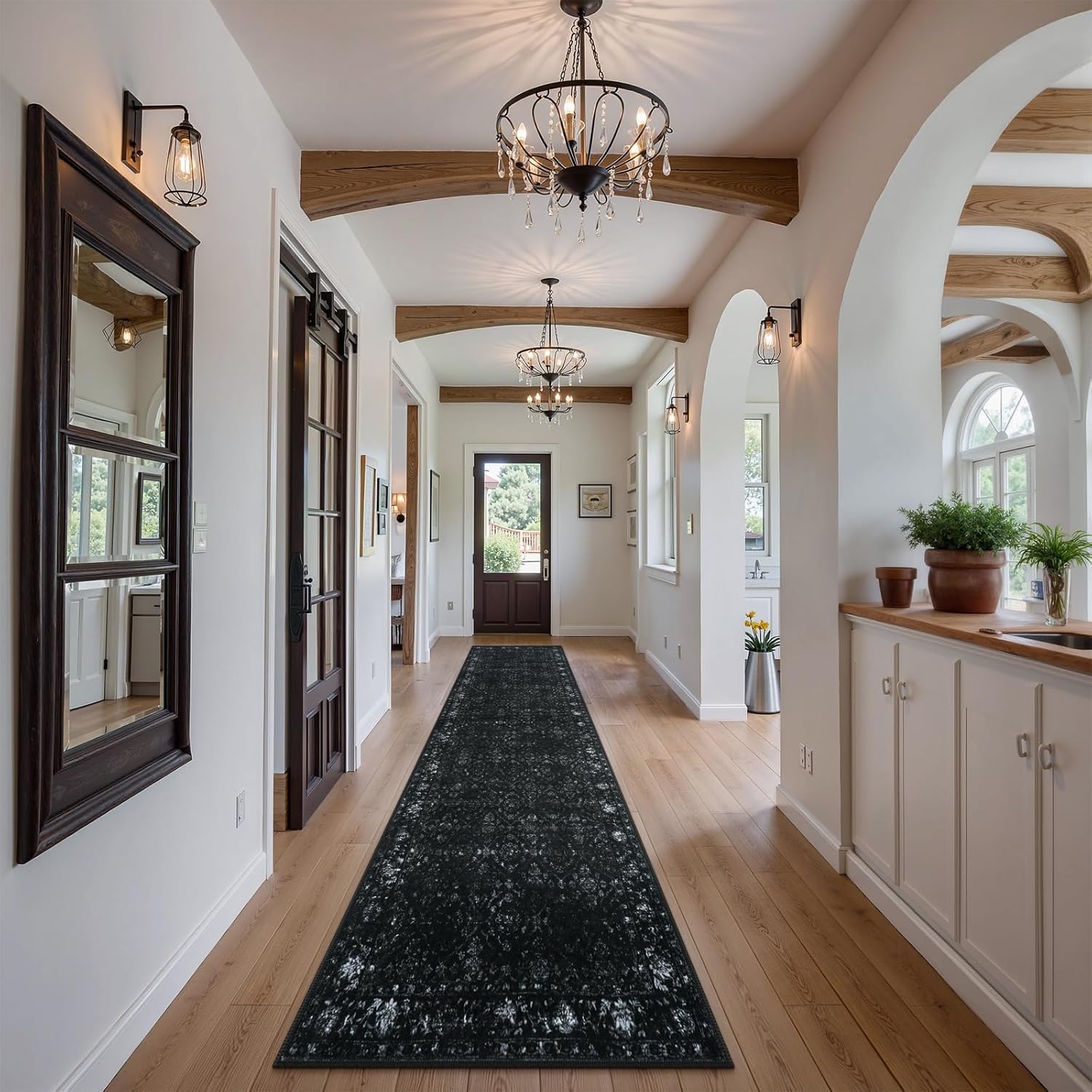 - Machine Washable: This black runner rug for hallway is easy to clean and machine washable, saving you time! Our washable runner is easy to throw in the wash for cleaning whenever needed. Perfect for family parties, kids and pets playing