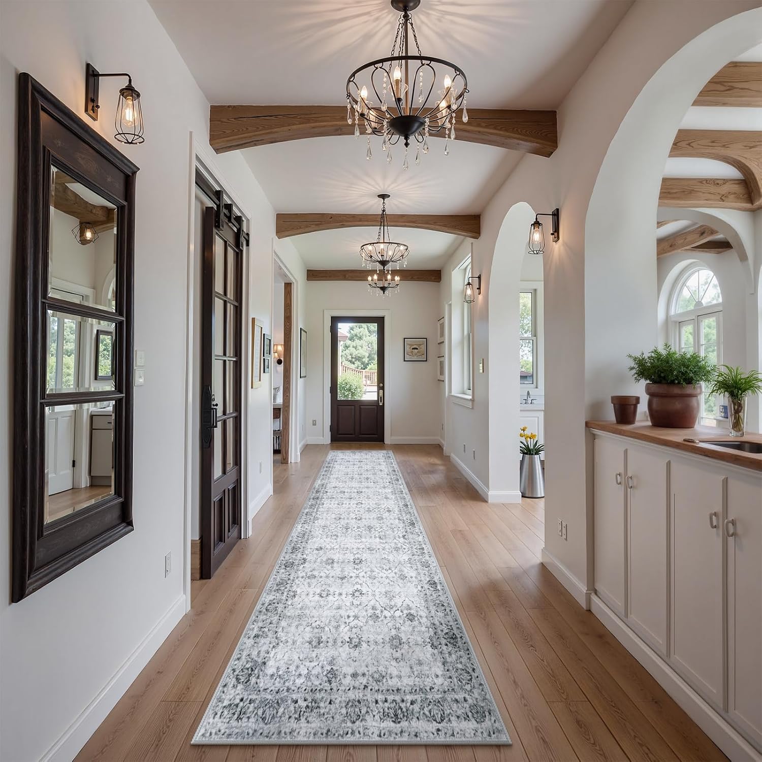 Vintage Machine Washable Runner, 2.6x10 Non Shedding Hallway Rug for Bedroom Bathroom, Ultra-Thin Soft Non Slip Carpet Runners for Entryway Laundry Room (2'6"x10', Grey)