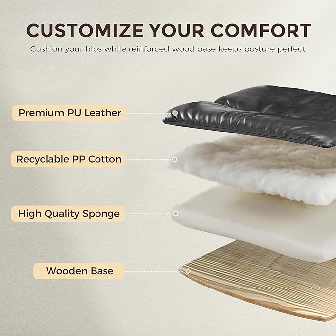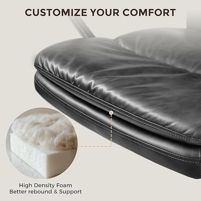 - 【Ergonomic Design for Optimal Posture】: The leather desk chair featuring a high-resilience backrest follows the natural curve of your spine, reducing lumbar pressure and promoting proper sitting posture. Soft, contoured edges on the seat and backrest offer gentle support, enhancing comfort and focus whether you’re working, gaming, or hosting meetings.