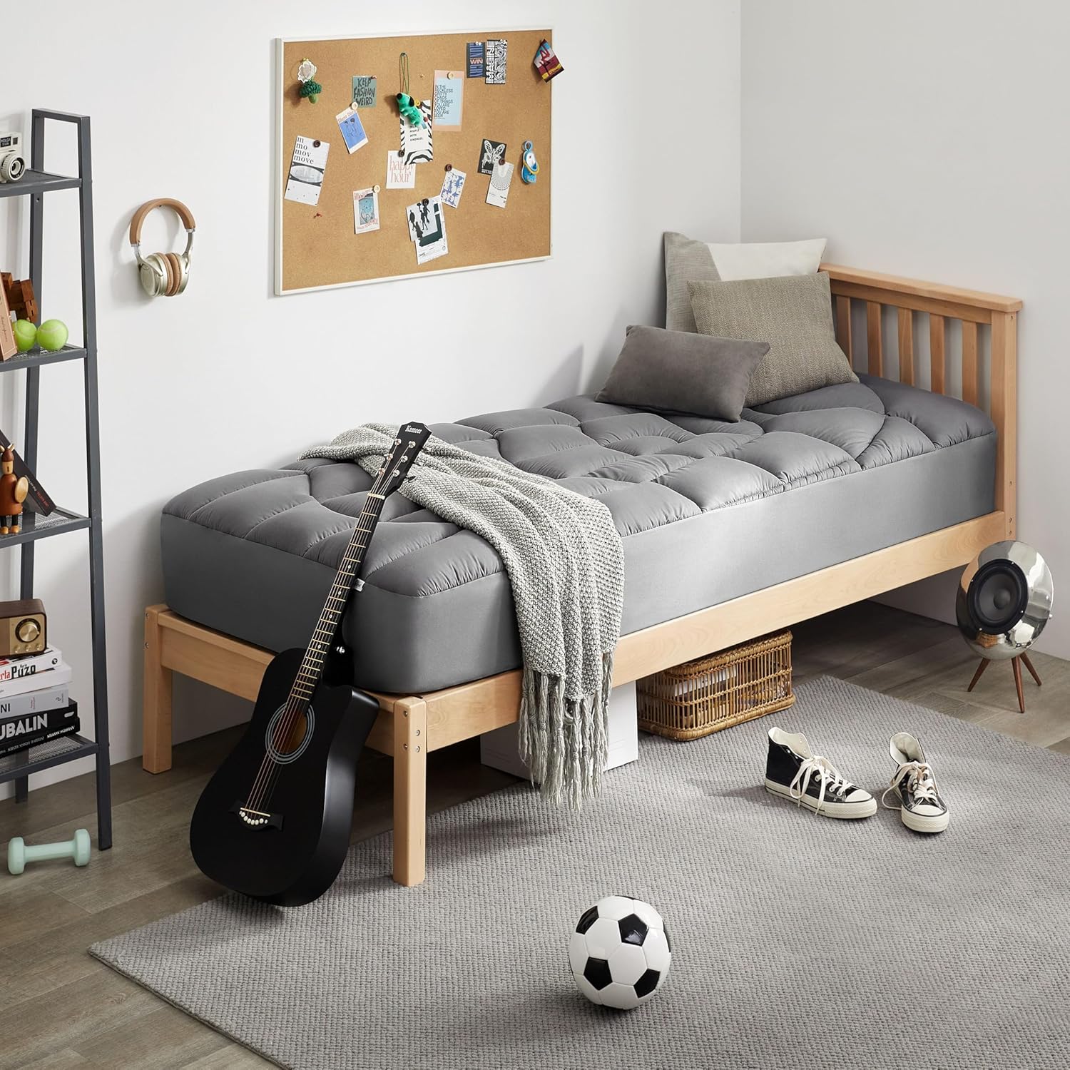 - Ergonomic Comfort: Experience ultimate comfort with our ergonomically quilted twin mattress pad. Its specially designed-stitching contours your body, providing gentle support that soothes muscles and eases tension. Enjoy a relaxing sleep environment with our grey twin mattress topper that helps reduce stress, waking you up refreshed and recharged every morning.
