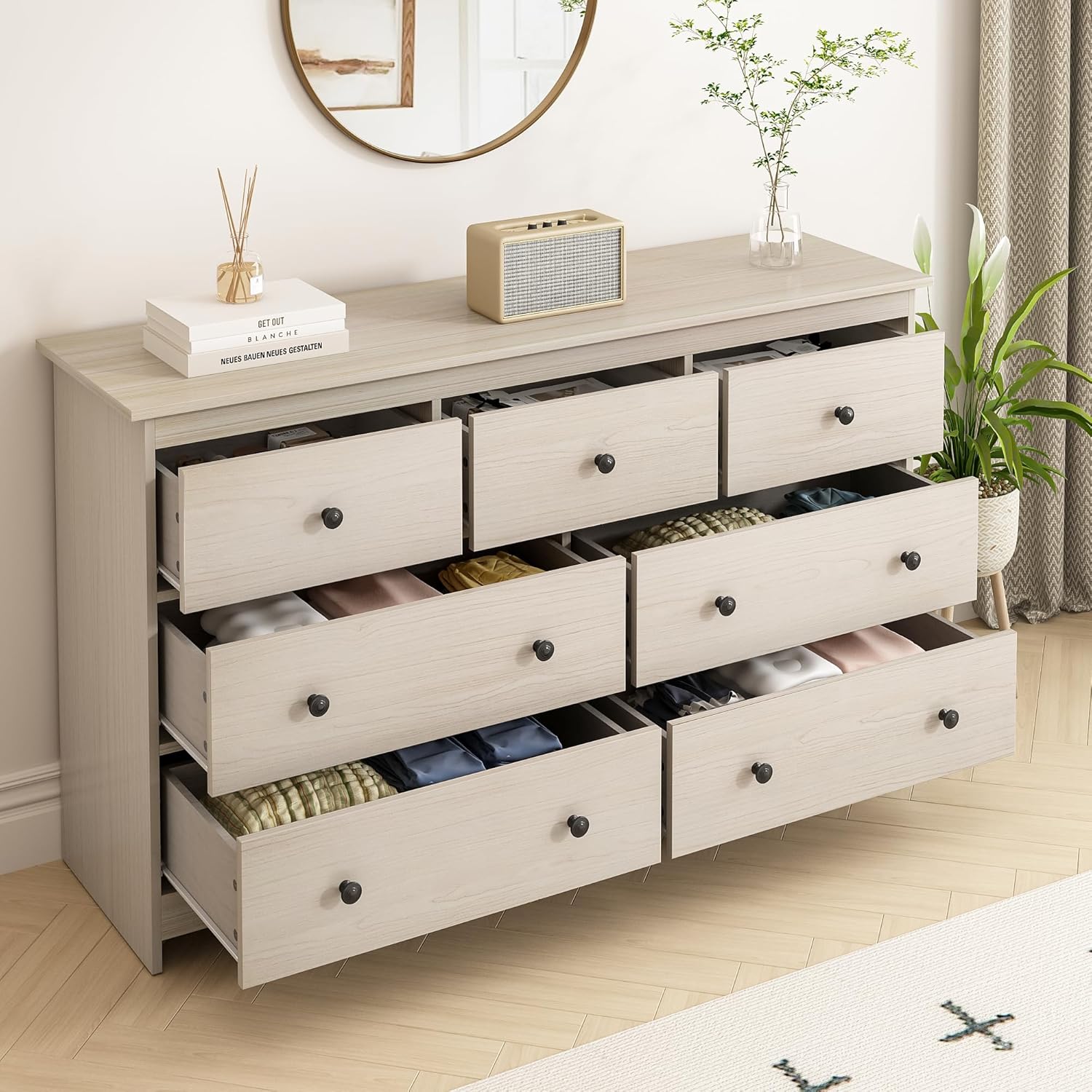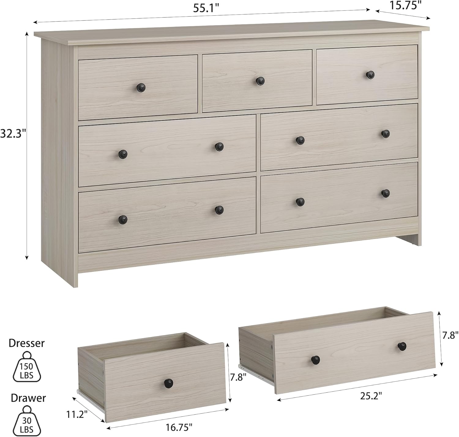 - 【Extra Large Storage Space】 JOZZBY beige dresser measures 55.1"(W) x 15.8"(D) x 32.3"(H). The oversized top of this chest of drawers is the perfect place to display decor, photos, plants, and more. It also has 3 small drawers and 4 large drawers to store and sort clothes, books, and other household items. This large storage capacity dresser covers all your storage needs to keep your room neat and organized.