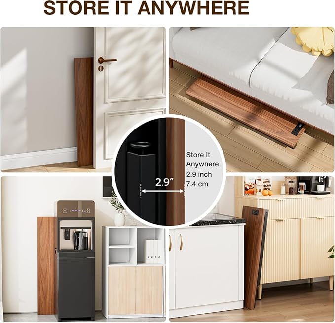 - πππ’π π£πππ§ ππ‘π πππ¦π¬ π§π’ π¦π§π’π₯π β When folded, this mini desk measures just 35.8" L x 15.7" W x 2.9" H. The small folding table design allows it to fit seamlessly behind doors, under beds, beside fridges, or in any other tight space, making it a great small computer desk for small spaces while keeping your room organized.