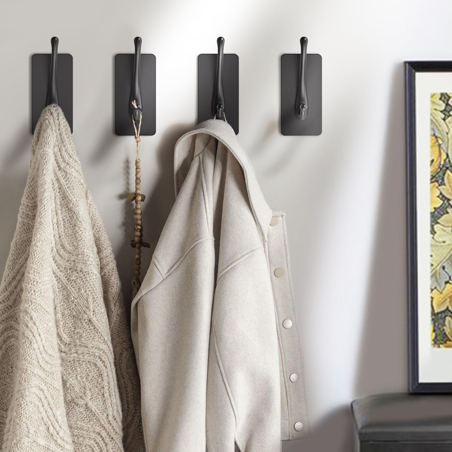 Towel Hooks, Solid Alloy Adhesive Wall Hooks for Hanging, Towel Hooks for Bathroom, RV, Kitchen, Closets, etc (Black, 2 Pack)