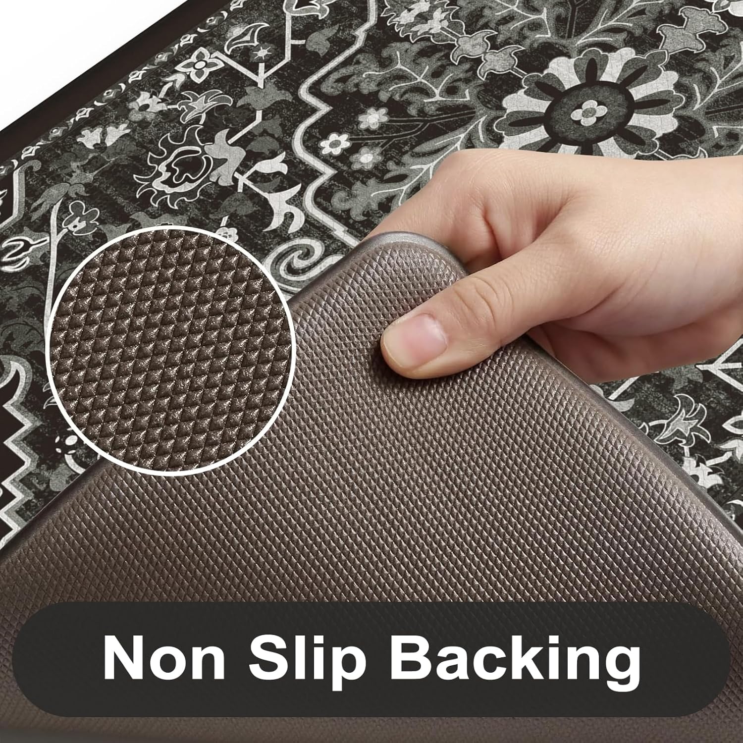 KIMODE Kitchen Mats Cushioned Anti Fatigue, Boho Vintage Kitchen Rugs Sets of 2, Non Slip Kitchen Mats for Floor, Memory Foam Kitchen Floor Mat for Sink Laundry Desk Black Multi 17"x47"+17"x29"