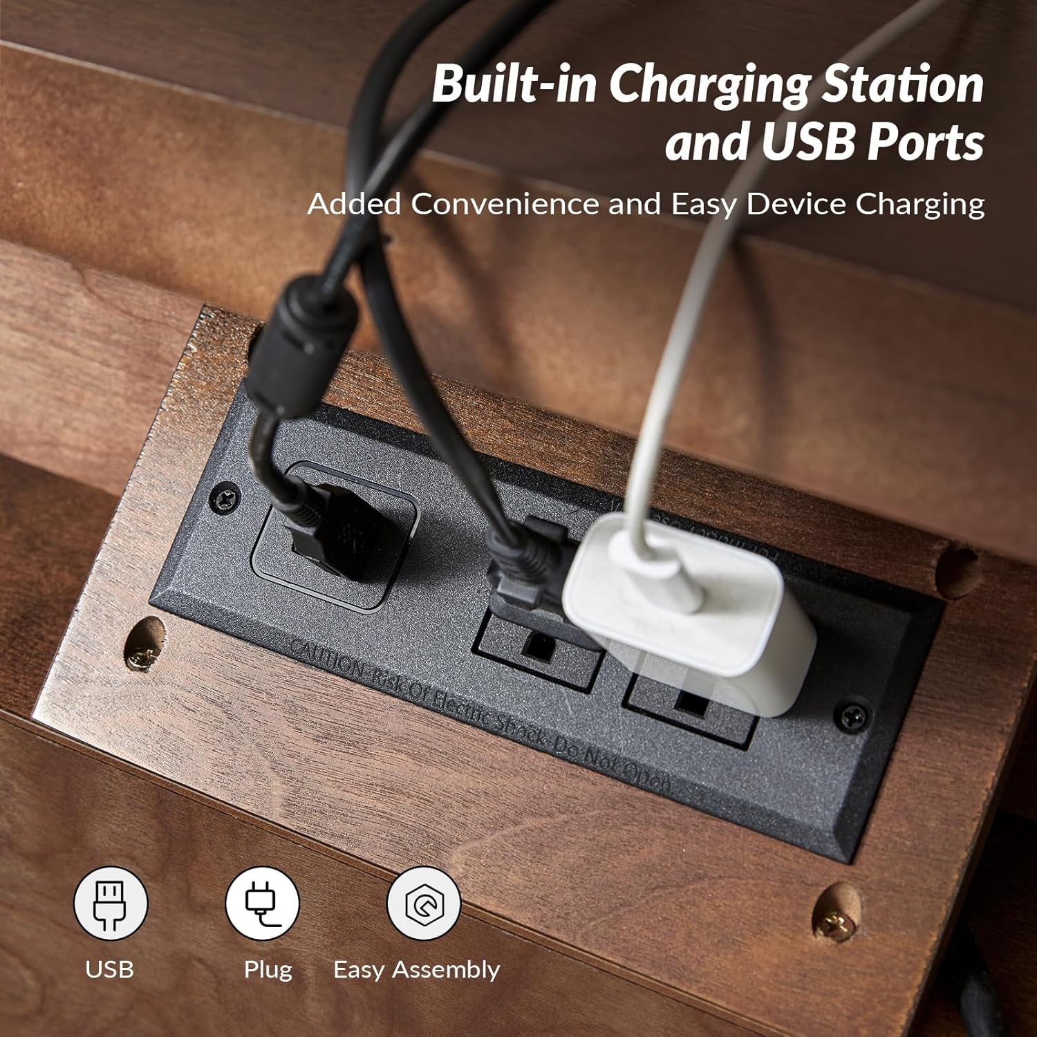 - Convenient Built-In Charging Station: Easily charge your devices with the integrated charging station, which features an outlet and cable management to keep cords organized and out of sight.