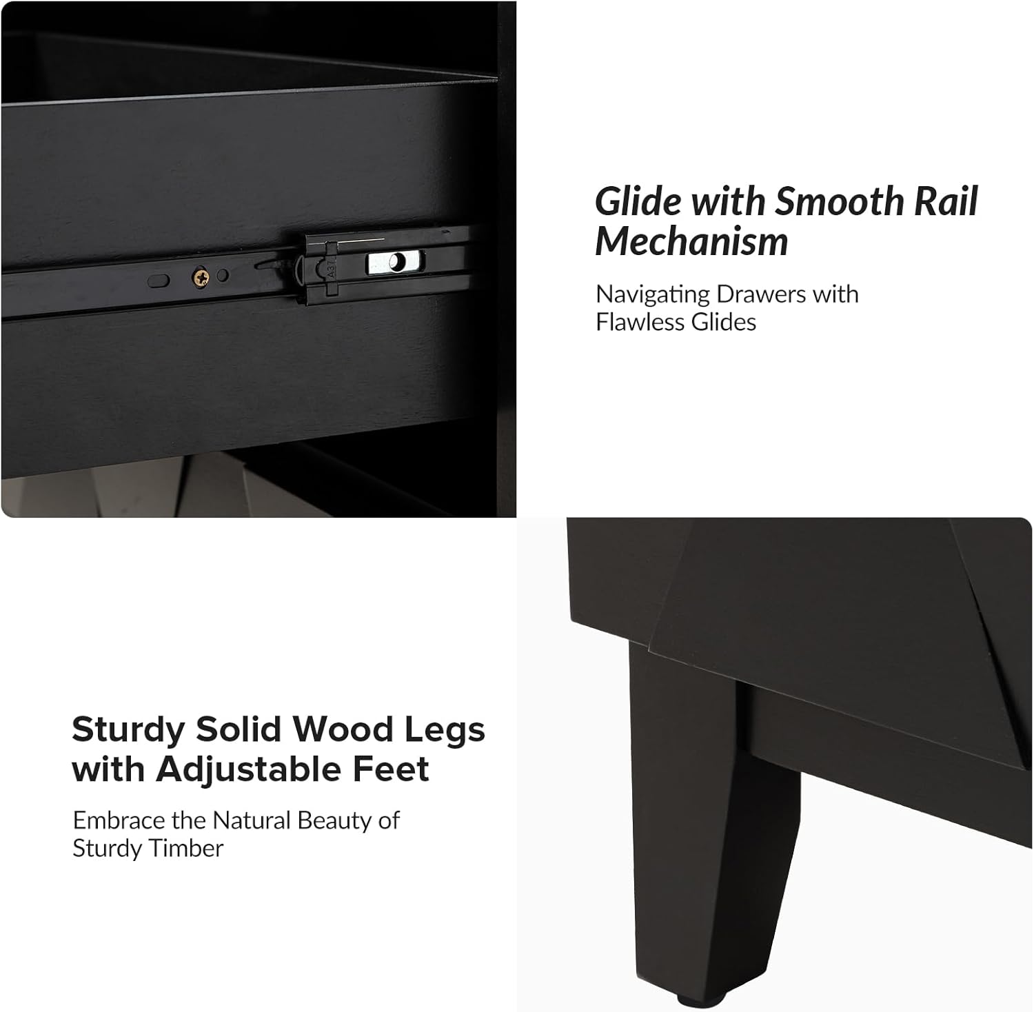 - Stylish Hexagonal Embellishments: The hexagonal details on the door fronts add a unique visual flair, elevating the nightstand’s aesthetic appeal and making it a standout piece in any room.