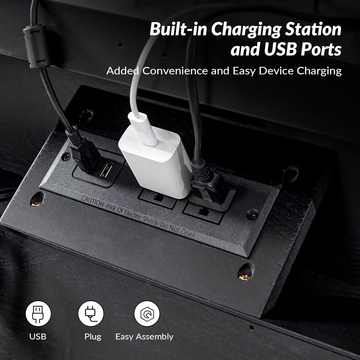- Convenient Built-In Charging Station: Easily charge your devices with the integrated charging station, which features an outlet and cable management to keep cords organized and out of sight.