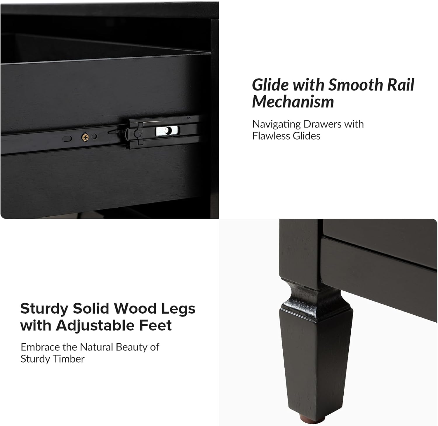 - ăSturdy & DurableăMade with a strong wood frame and solid legs, this bedside table offers stable support. It features smooth metal drawer glides and durable handles, ensuring long-lasting use. Adjustable feet help it stay level on uneven floors.
