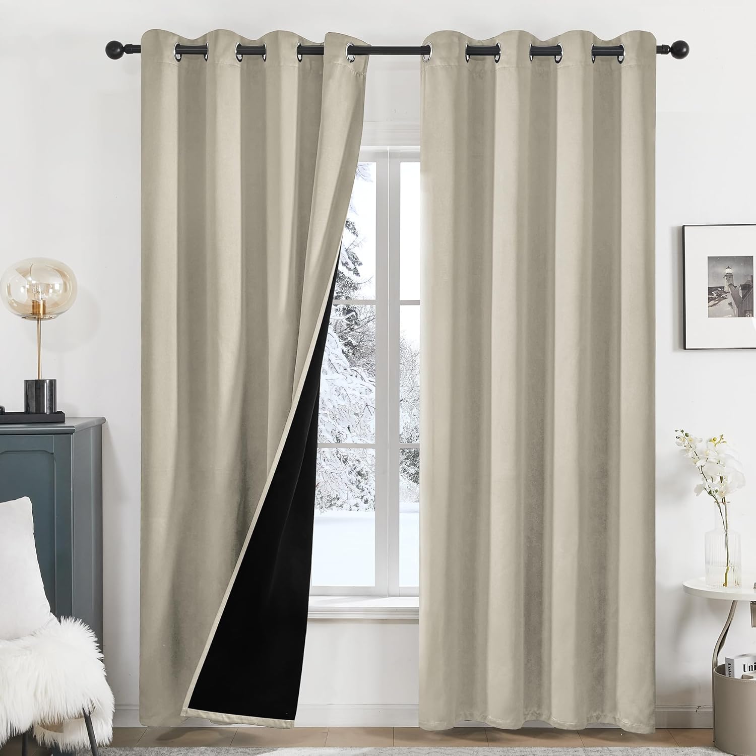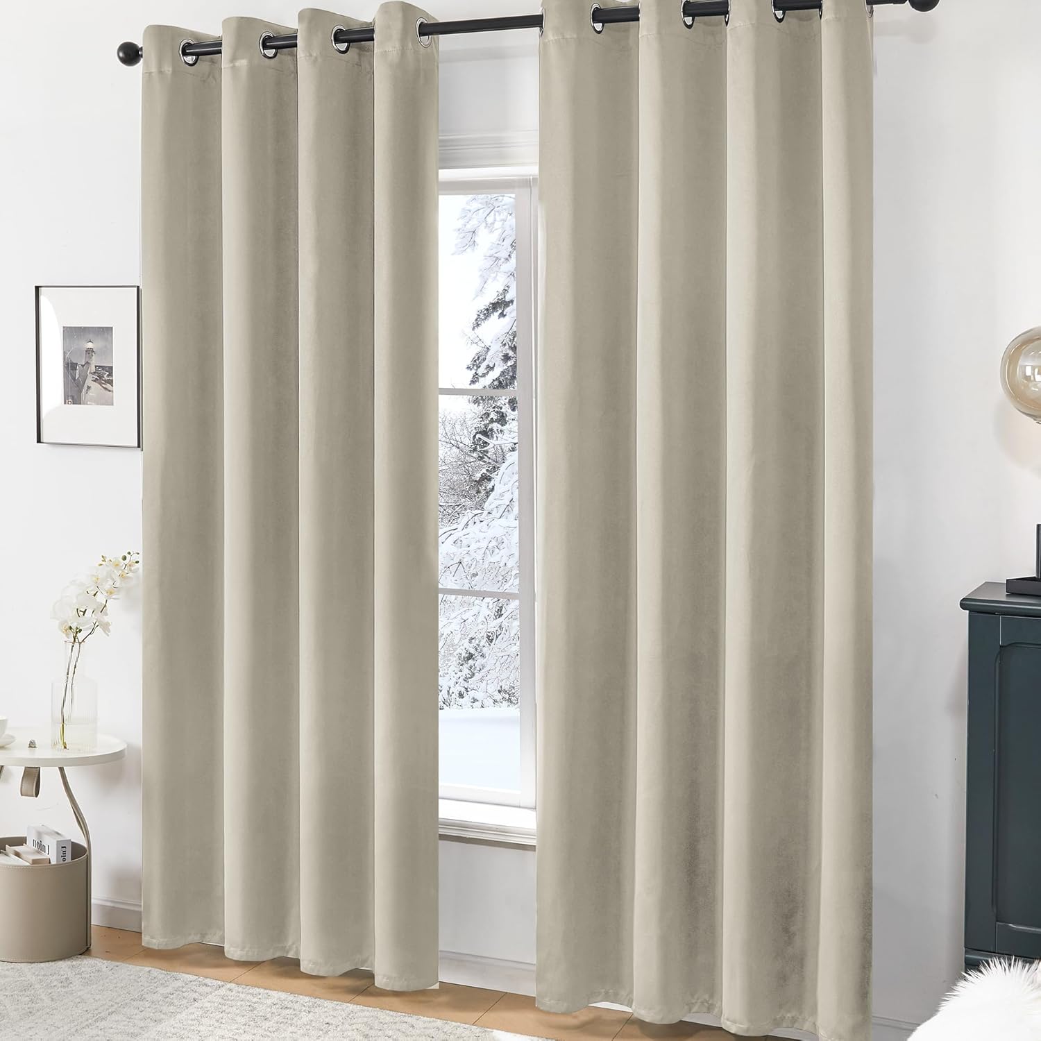 Deconovo Blackout Curtains – Noise-Reducing & Energy-Saving Grommet Top Thermal Insulated Drapes, 2 Panels, Ivory Beige, 52W x 84L Inches – Light Blocking & Privacy for Bedroom & Living Room