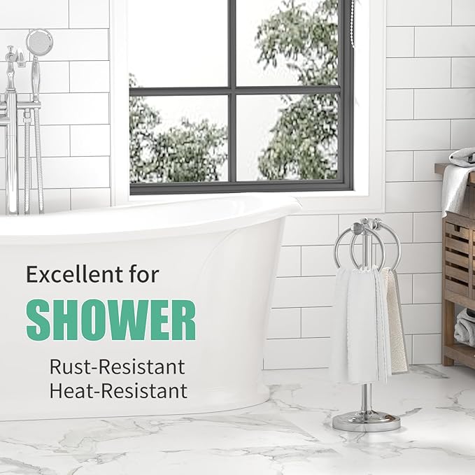 Hoimpro 17" Polished Chrome Standing Towel Rack Bracket, Double Towel Ring Free Hand Towel Stand Holder Bathroom Hardware Accessories Set Towel Bar for Bathroom Vanities and Kitchen Countertops