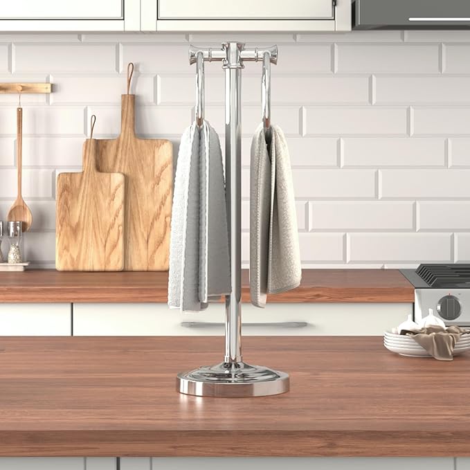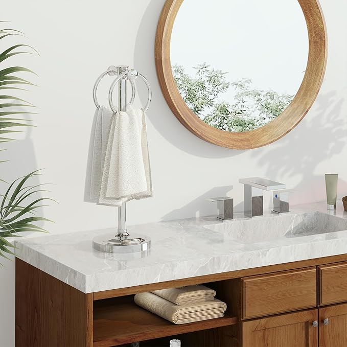 - CONVENIENT STORAGE-Towel holder features two rings for hanging small towels of different thicknesses; Two-sided design lets you hang two matching or coordinating towels; Helps to dry towels quickly.