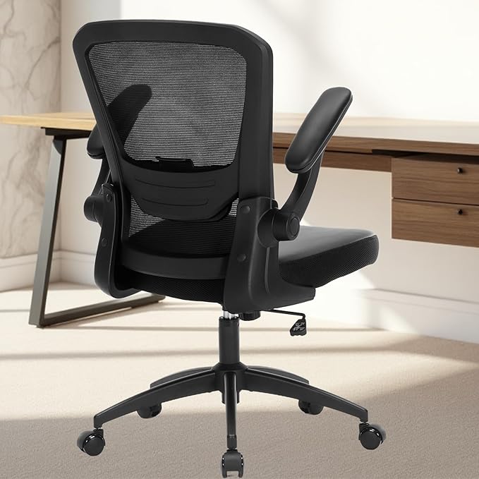 - 【Adjustable Comfort Mesh Desk Chair 】 This mesh computer chair offers an adjustable height range of 18.11-22.05 inches, making it suitable for users of varying heights. The 90° flip-up pu armrests provide flexibility and allow the chair to be easily stored under your desk, saving space when not in use.