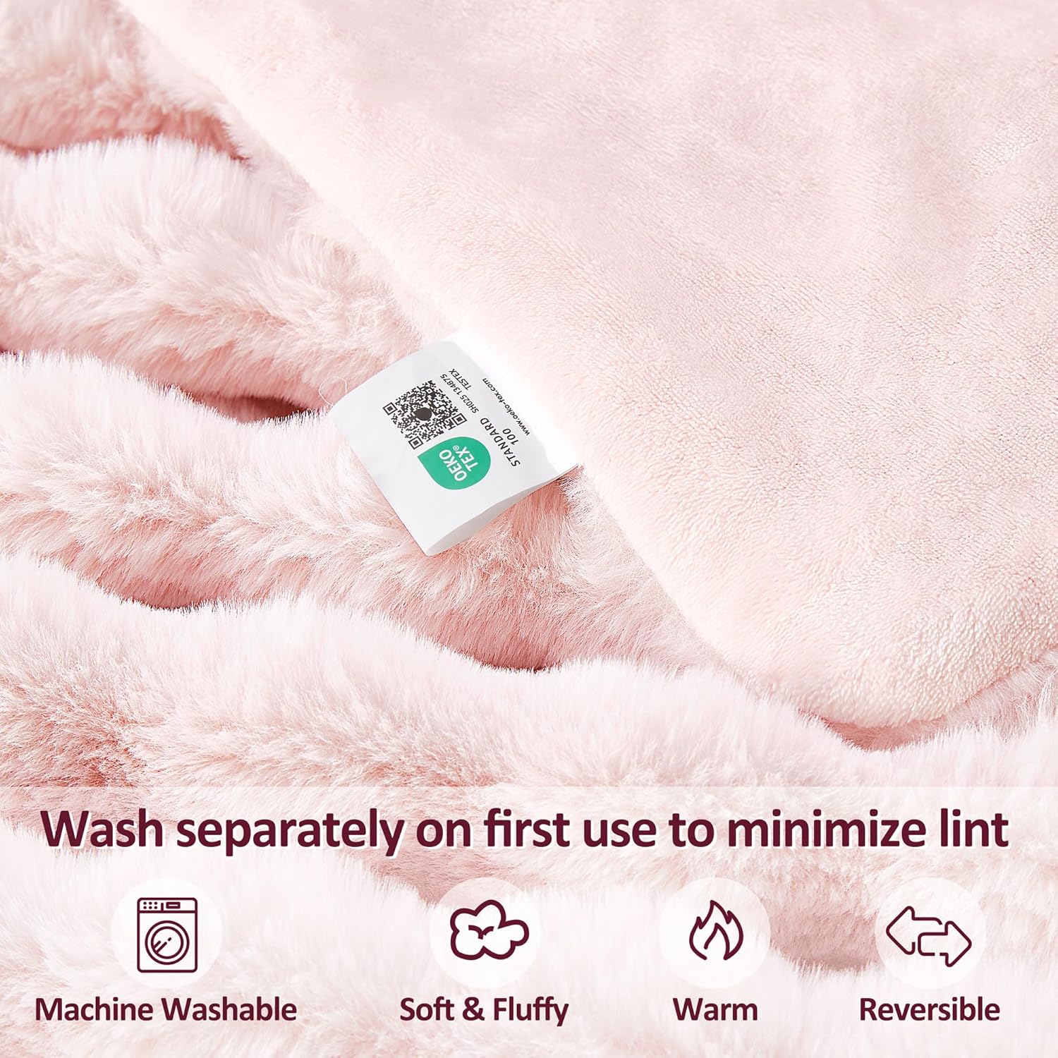 JONIYEAR Decorative Large Pink Bubble Faux Rabbit Fur Bed Blanket Full Size 70" x 80",Double Sided Soft Cozy Accent Warm Furry Blanket for Winter,Lovely Cute Big Washable Fuzzy Blankets for Women Girl