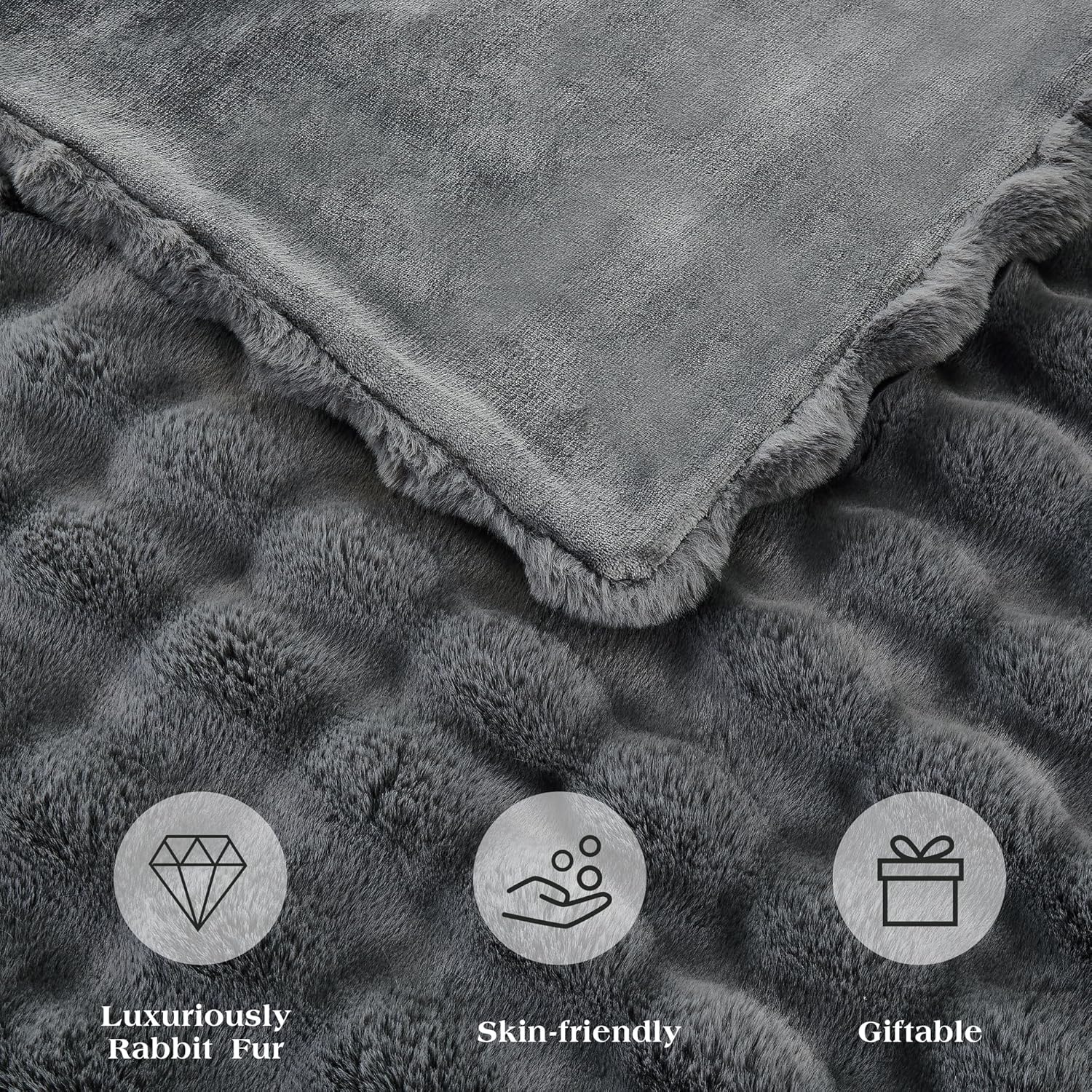 JONIYEAR Large Solid Thick Bubble Faux Rabbit Fur Bed Blanket Full Size 70" x 80", Decorative Cute Cozy Fluffy Gray Warm Blanket for Winter, Reversible Big Luxe Fuzzy Comfy Shaggy Furry Blankets, Grey