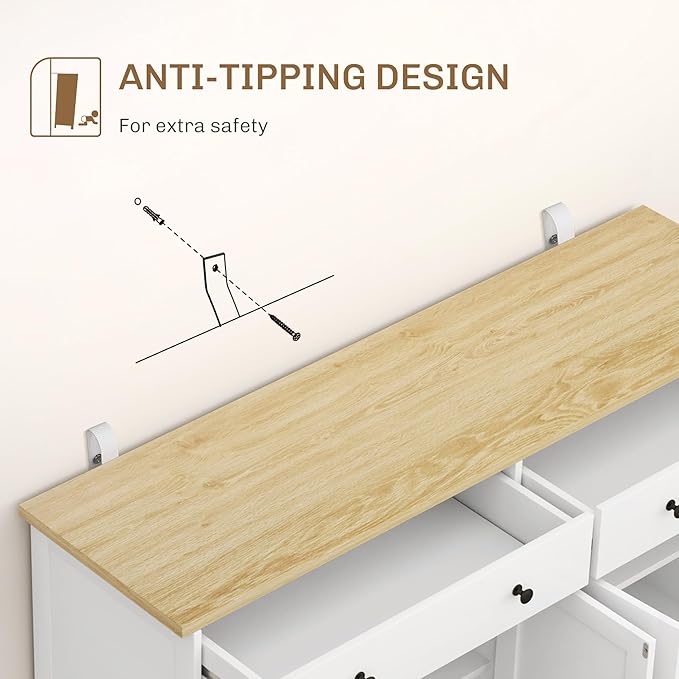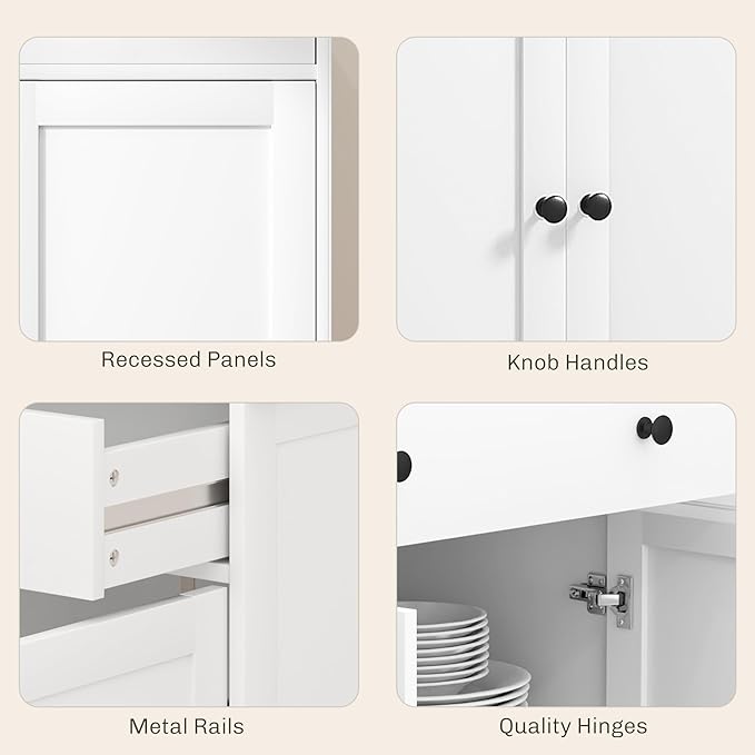 - Thoughtful Workmanship: Made of a quality engineered wood frame, our sideboard storage cabinet is fit for daily use and is easy to maintain. An anti-tipping design on the back of the cabinet stops it from falling over.