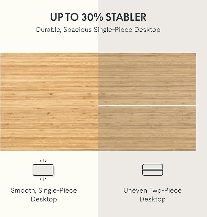 - UNIQUE BAMBOO SURFACE: The one and only! Our bamboo desktop is crafted by layering thousands of real bamboo strips together, preserving the beautiful, unique natural grain of each piece. This makes every standing desk truly one of a kind.