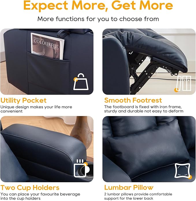 - DURABLE AND RELIABLE: This electric recliner sofa is made of high-quality faux leather materials, making it durable and durable. Its sturdy frame and sturdy connectors ensure stability and safety. In addition, all electronic and mechanical components undergo rigorous testing to ensure long-term functionality
