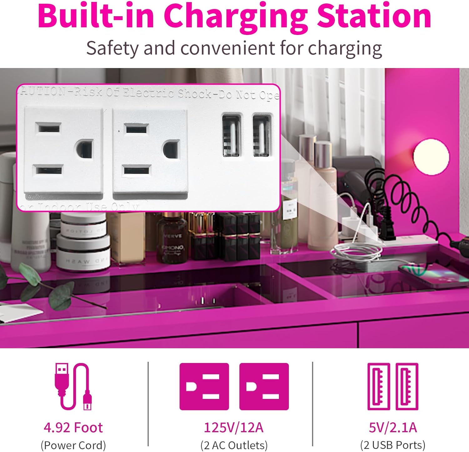 - Convenient Charging Station with USB Ports: The built-in power strip includes 2 standard plug sockets and 2 USB ports, making it easy to charge your devices or use your hair dryer and curling iron while seated at your vanity.