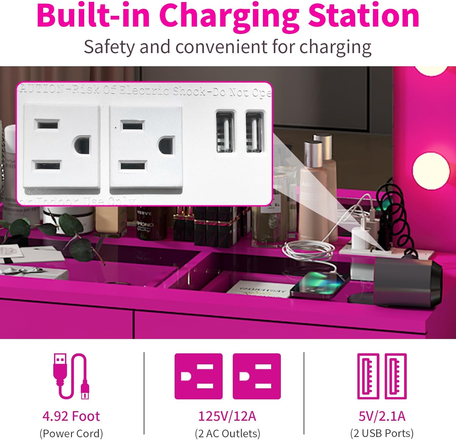 - Convenient Charging Station with USB Ports: The built-in power strip includes 2 standard plug sockets and 2 USB ports, making it easy to charge your devices or use your hair dryer and curling iron while seated at your vanity.